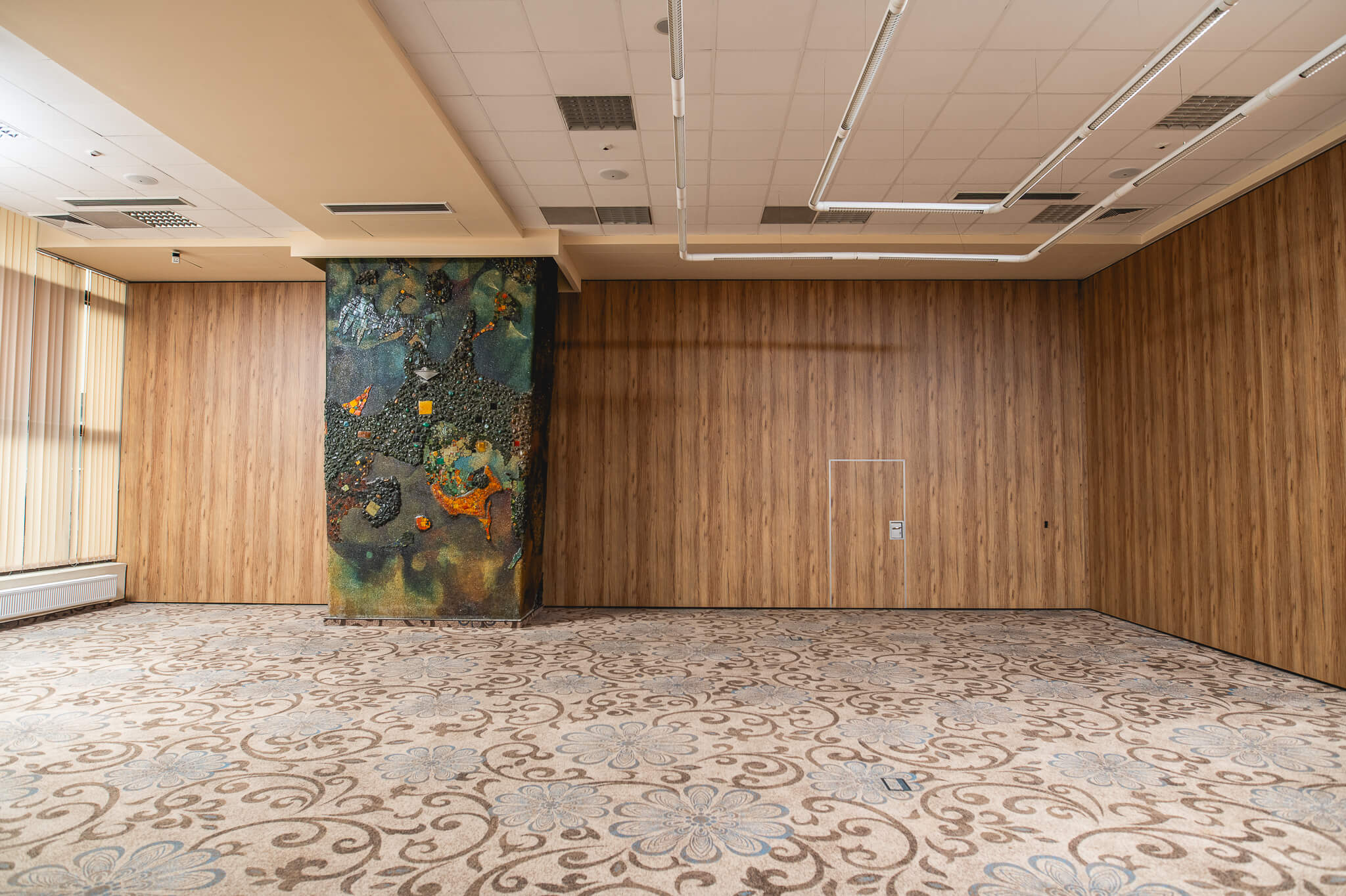 A project for a hotel with a 60-year heritage required a solution that is modern and at the same time harmonises with the building’s overall aesthetic. This resulted in a project for high-acoustic mobile walls. Finished with wood-effect laminate featuring seamless vertical joints and concealed edges, the walls provide a perfect backdrop for the unique historic mosaic situated nearby.